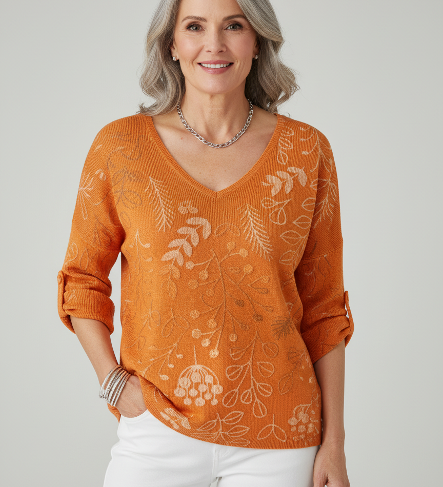 MIRELLE | Pulover din amestec de bumbac cu model de frunze