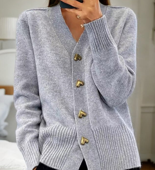 ADELE | Pulover Moale cu Nasturi în Formă de Inimă