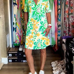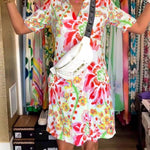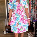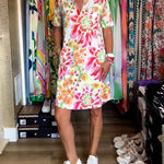 Design Floral Vibrant: Împodobită cu un model floral viu, această rochie aduce strălucirea naturii în garderoba ta — perfectă pentru purtarea zilnică sau următoarea vacanță.