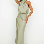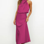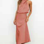 Radiantă, feminină și grațioasă – Rochia Halter din Satin Elegance în tonuri calde, de vară, este alegerea perfectă pentru o nuntă, o cină sau o seară elegantă de vară. Confecționată dintr-un material de satin luxos și fluid care reflectă frumos lumina, această rochie emană sofisticare. Partea de sus are un decolteu halter drapat cu un spate deschis pentru un aspect senzual, dar stilat. Fusta se drapează elegant pe corp, terminându-se într-o lungime midi flatantă.
