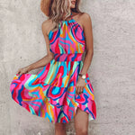 KORA – ROCHIE MIDI BOHEMIANĂ COLORATĂ CU DECOLTEU ÎN V