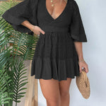 Îmbrățișează farmecul feminin cu rochia noastră salopetă din dantelă croșetată. Overlay-ul delicat din dantelă combinat cu o bază din material simplu creează un aspect care este atât elegant, cât și ușor de purtat—perfect pentru orice ocazie.