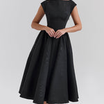 Rochia Lumi este fuziunea perfectă între un design îndrăzneț și eleganță rafinată. Cu o tăietură impresionantă fără spate și detalii delicate cu umeri lăsați, această rochie este creată pentru a atrage priviri, păstrând în același timp o sofisticare fără efort. Fie că ieși pentru o seară specială sau participi la un eveniment chic de vară, rochia Lumi face o declarație de încredere și grație.