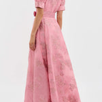• Design: Eleganță florală în roz moale cu talie evidențiată