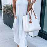 Rochia Maxi cu Halter Renata este piesa ta de bază pentru serile de vară fără griji și farmecul fără efort. Cu nuanța sa clasică de heather și silueta sa vaporoasă, această rochie radiază eleganță subtilă. Concepută pentru confort și stil, decolteul halter adaugă o notă de sofisticare, în timp ce opțiunea de a lega tivul oferă o întorsătură jucăușă și personalizată.