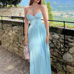 Vivian | Rochie Maxi Fără Bretele, Plisată și Fluidă
