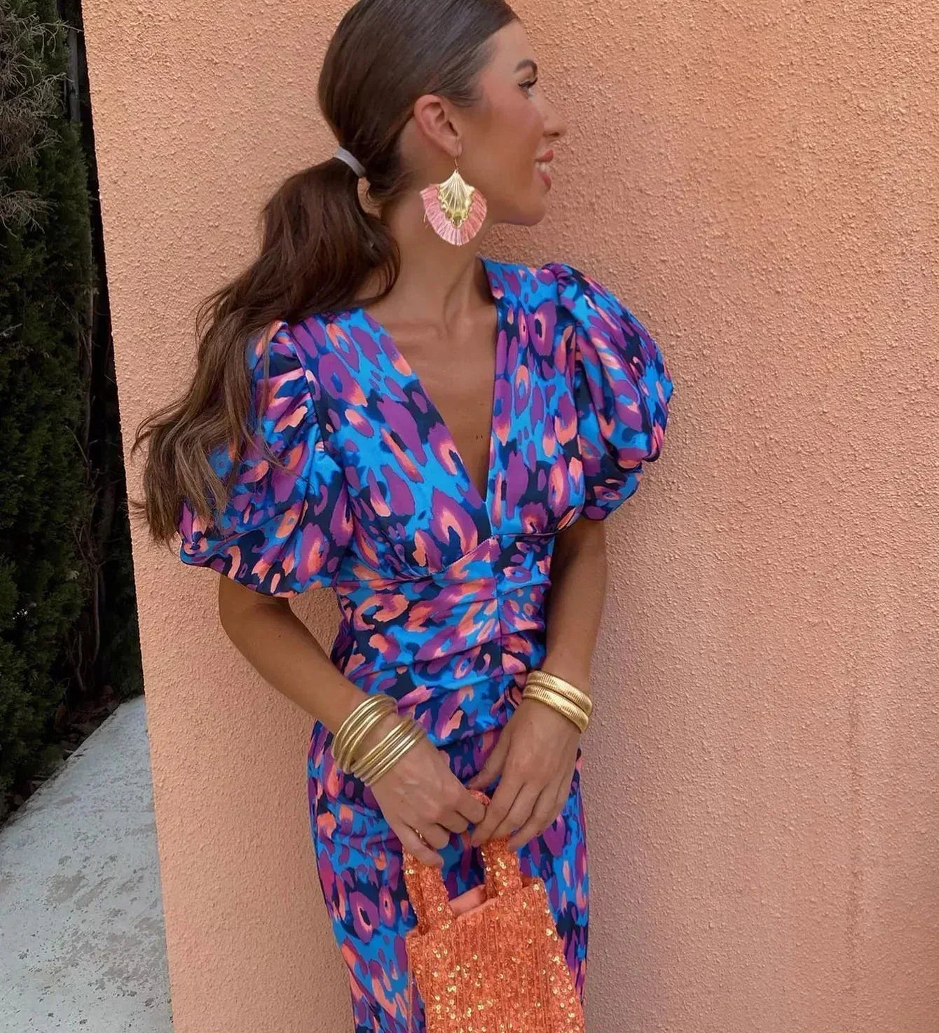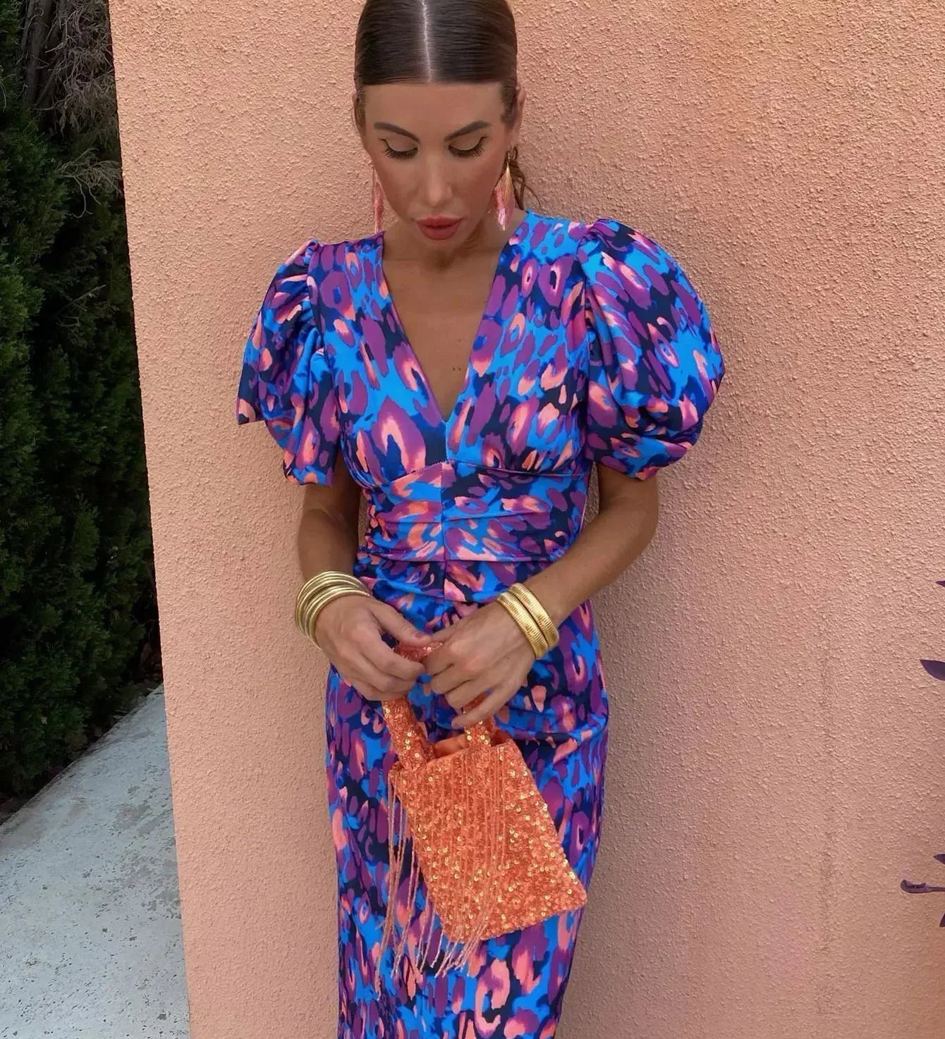 Devika – Rochie Midi cu Mâneci Puff Vibrante
