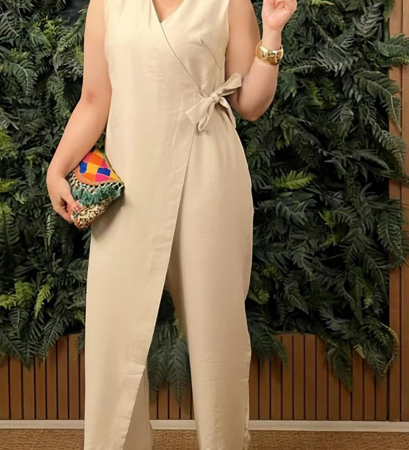 KAELANI – SALOPETĂ CASUAL FEMININĂ CU DECOLTEU ÎN V ȘI SERTĂRE