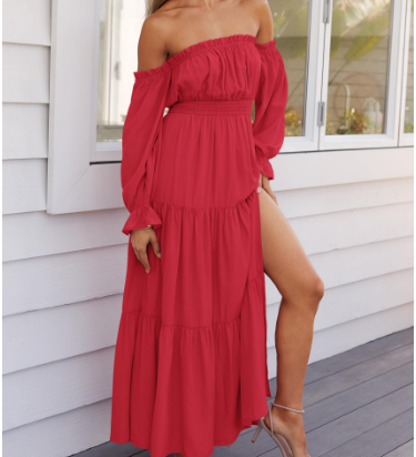KENDRA – ROCHIE MAXI OFF-SHOULDER CU ROMANTISM UȘOR