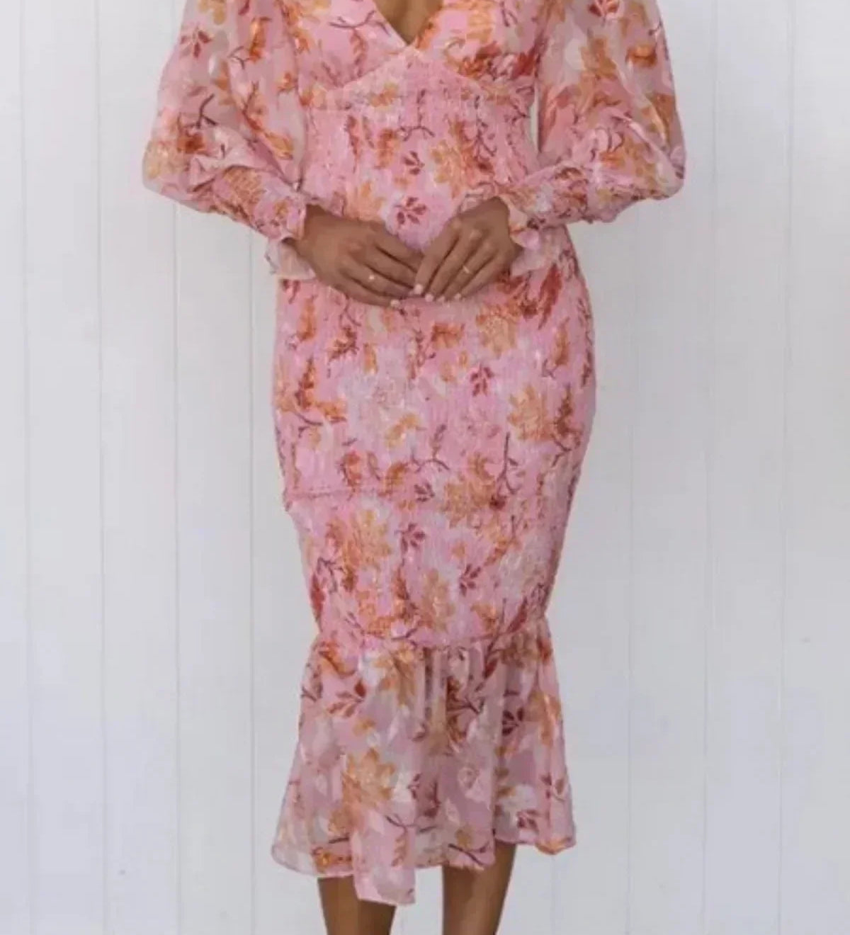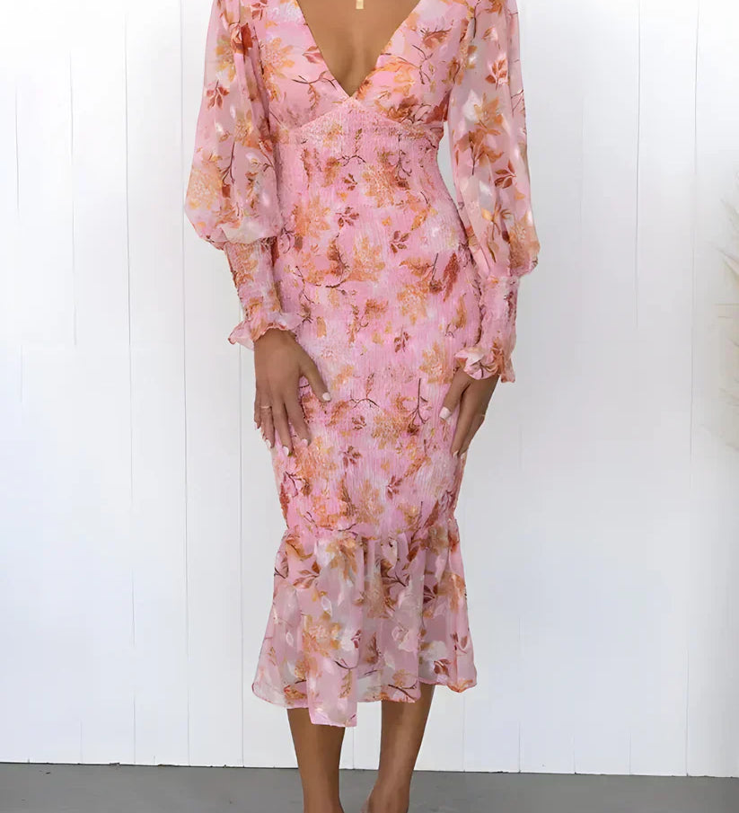 Rebecca - Rochie Midi Casual Chic cu Mâneci Volănașe