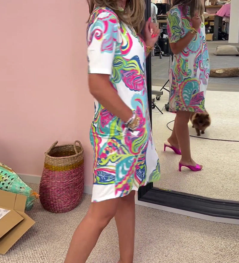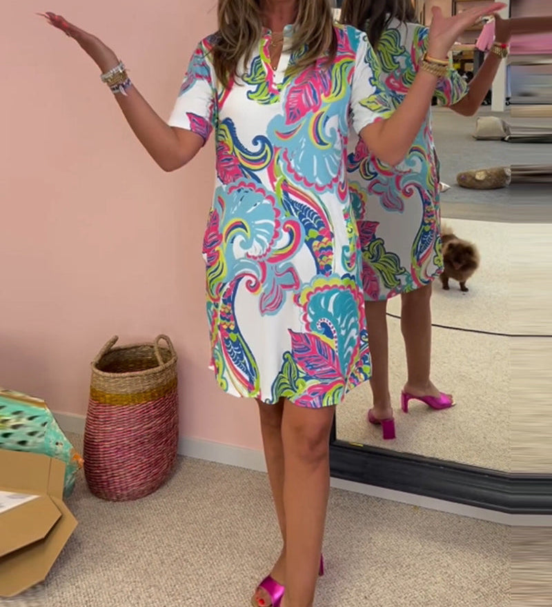 Rochie Midi Femei cu Decolteu în V Multicolor