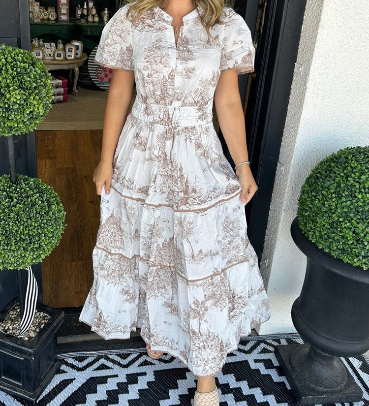 SAVANNAH – ELEGANȚĂ TIMPLESĂ ÎN ROCHIE MAXI CU VOLANE