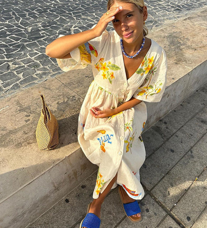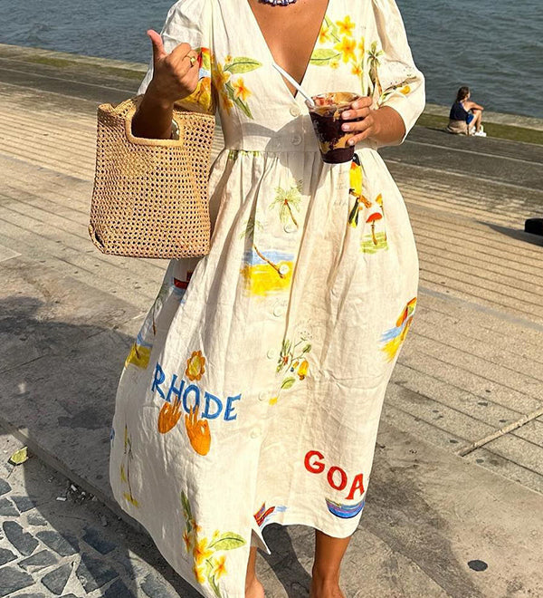 Zoey – Rochie Midi de Vară cu Imprimare Ilustrativă