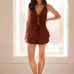 Setul Hailey Breeze Away cu legătură în față este alegerea ta pentru zilele însorite și vibrațiile relaxate. Cu un top halter jucăuș cu legătură și pantaloni scurți lejeri, acest duo ușor menține lucrurile jucăușe și fără efort. Fie că te relaxezi acasă sau ieși pentru un brunch casual, acest set îți oferă acea încredere răcoroasă și lipsită de griji pe parcursul întregii zile.