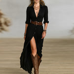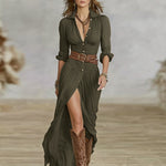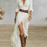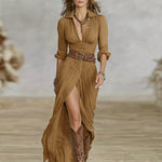 Rochia Savannah Outback Goddess este locul unde glamour-ul de pe catwalk întâlnește farmecul rustic. Cu un decolteu cu nasturi, o siluetă fluidă și o curea care subliniază talia, este perfectă pentru a face o impresie, fie că ești la un festival, într-o escapadă de weekend sau într-o seară sub stele. Asortează-o cu cizme sau sandale pentru un look versatil și de neuitat.