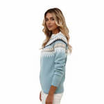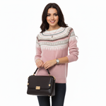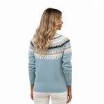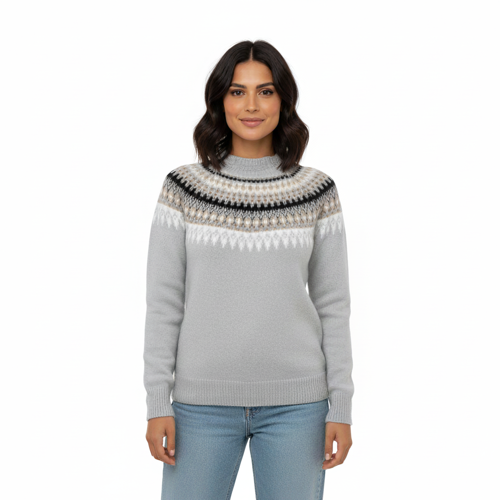 Un pulover moale, feminin, cu model nordic în zona bustului — perfect pentru zile răcoroase, casual sau elegante. Croiala lejeră și detaliile fine îi oferă un aspect modern, ușor de purtat și combinat.