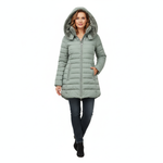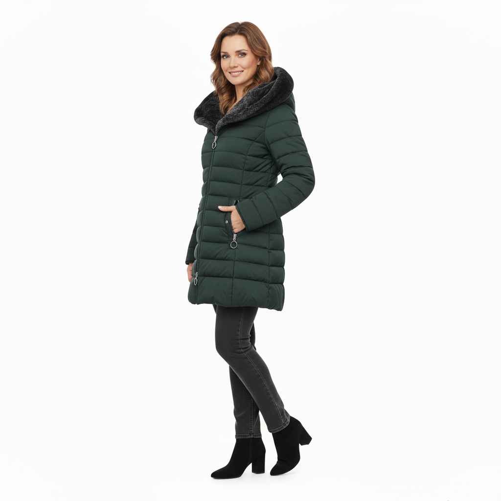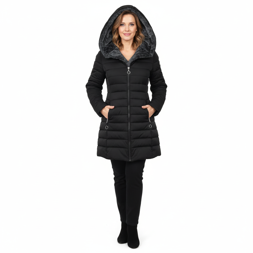 Un palton matlasat modern, cu glugă generoasă și blană eco pufoasă, care îți completează perfect ținutele de iarnă. Călduros, ușor și feminin, este piesa ideală pentru zilele reci în care vrei să te simți confortabil, dar și stilată.