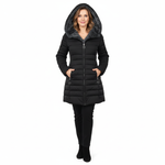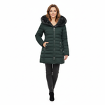 Elena-Maria | Palton matlasat cu glugă și blană eco