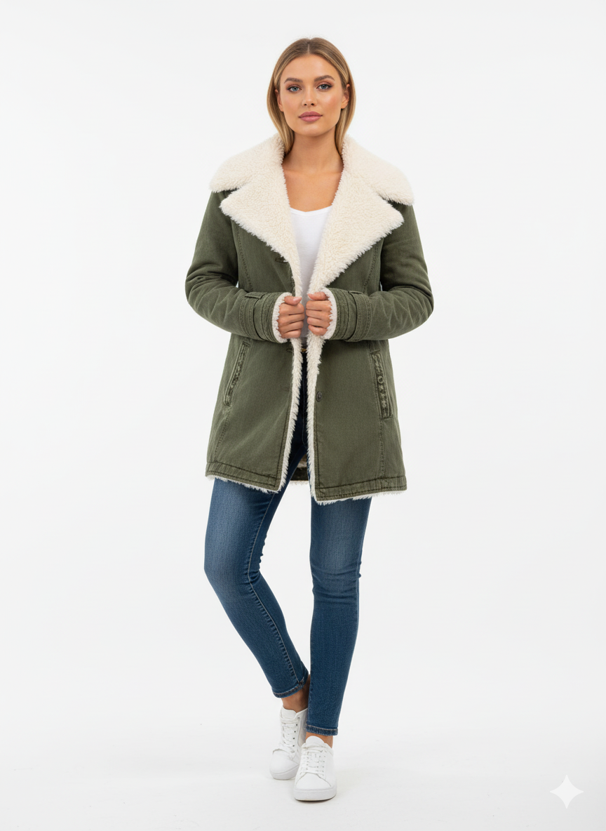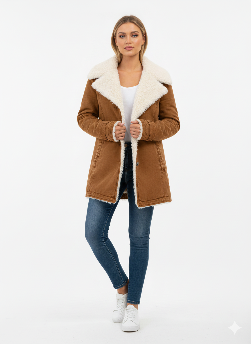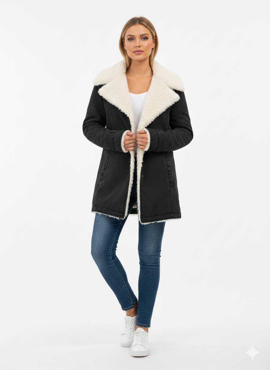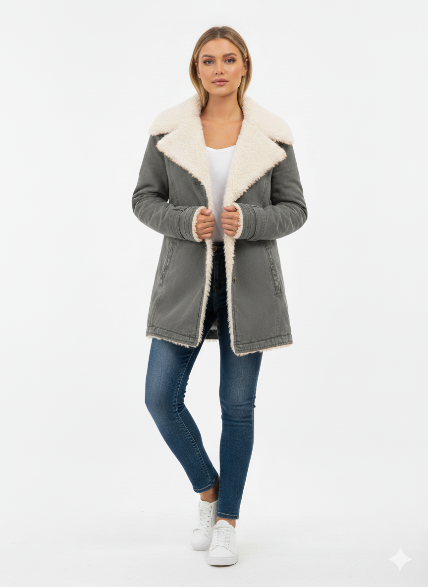 Nadia | Jachetă cozy cu guler îmblănit