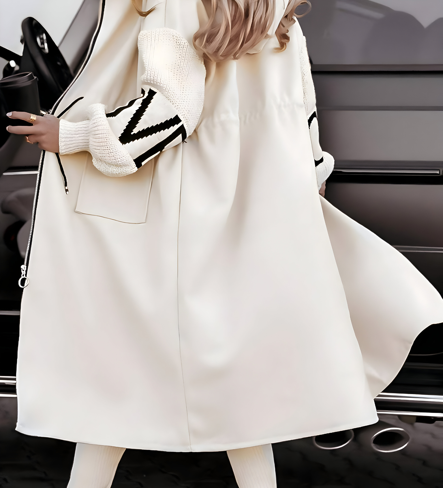 Camelia | Palton Lung Cu Mâneci Din Tricot Și Glugă