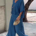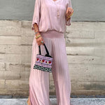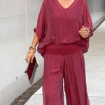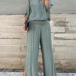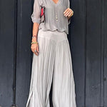 ESMERALDA – SET DIN DOUĂ PIESE CU PANTALONI LARGI DIN CHIFFON ELEGANT