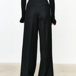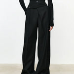 Design: Pantaloni eleganți cu picior drept, având o talie asimetrică stratificată cu detalii cu nasturi, adăugând o notă modernă unei siluete clasice. Designul croit îmbunătățește un aspect elegant și sofisticat.