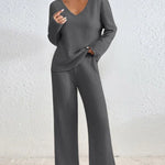 Setul format din Top și Pantaloni Sabina combină un top lejer cu decolteu în V cu pantaloni drepti pentru un aspect modern și confortabil care se mișcă împreună cu tine. Proiectat pentru versatilitate, este perfect pentru relaxare acasă, întâlniri cu prietenii la prânz sau pentru o seară casual în oraș, devenind ținuta ta preferată pentru orice ocazie.