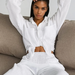 Design: Un set relaxat din două piese, format dintr-o cămașă cu nasturi și guler clasic și pantaloni cu picior larg pentru un look chic fără efort. Designul minimalist îmbunătățește versatilitatea și confortul.
