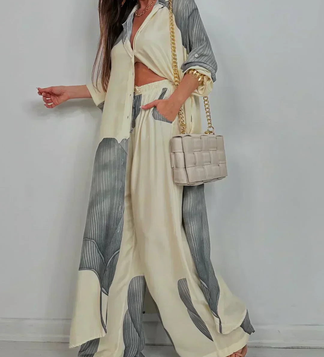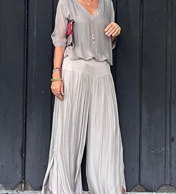 ESMERALDA – SET DIN DOUĂ PIESE CU PANTALONI LARGI DIN CHIFFON ELEGANT