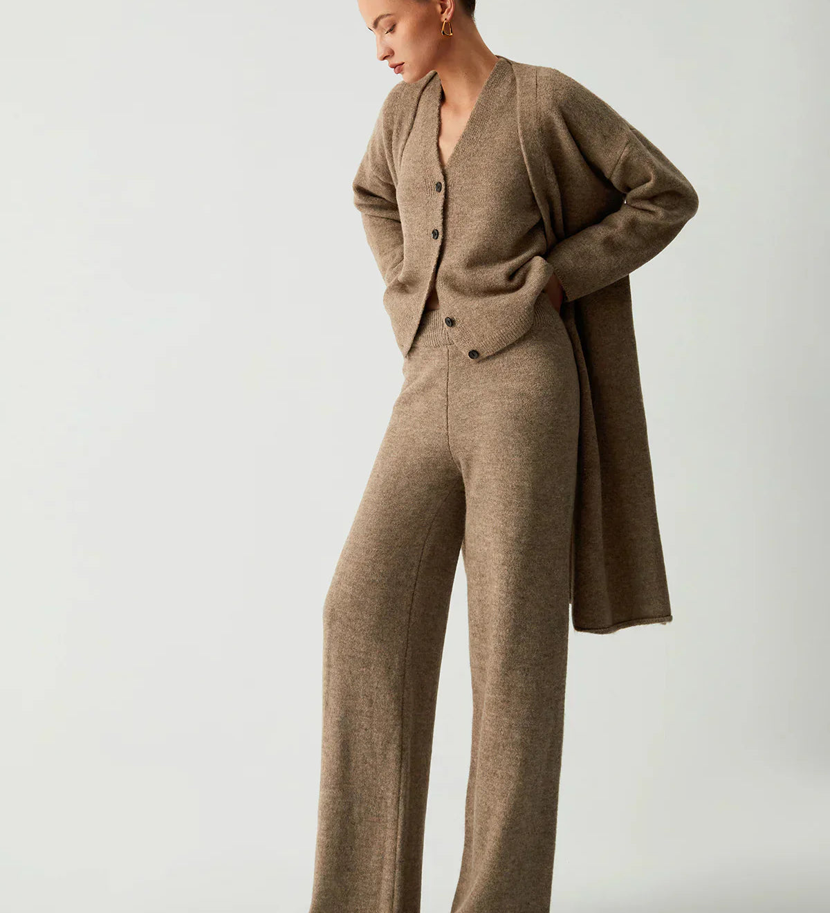 Sacou vintage coordonat mocha și pantaloni cu picioare largi