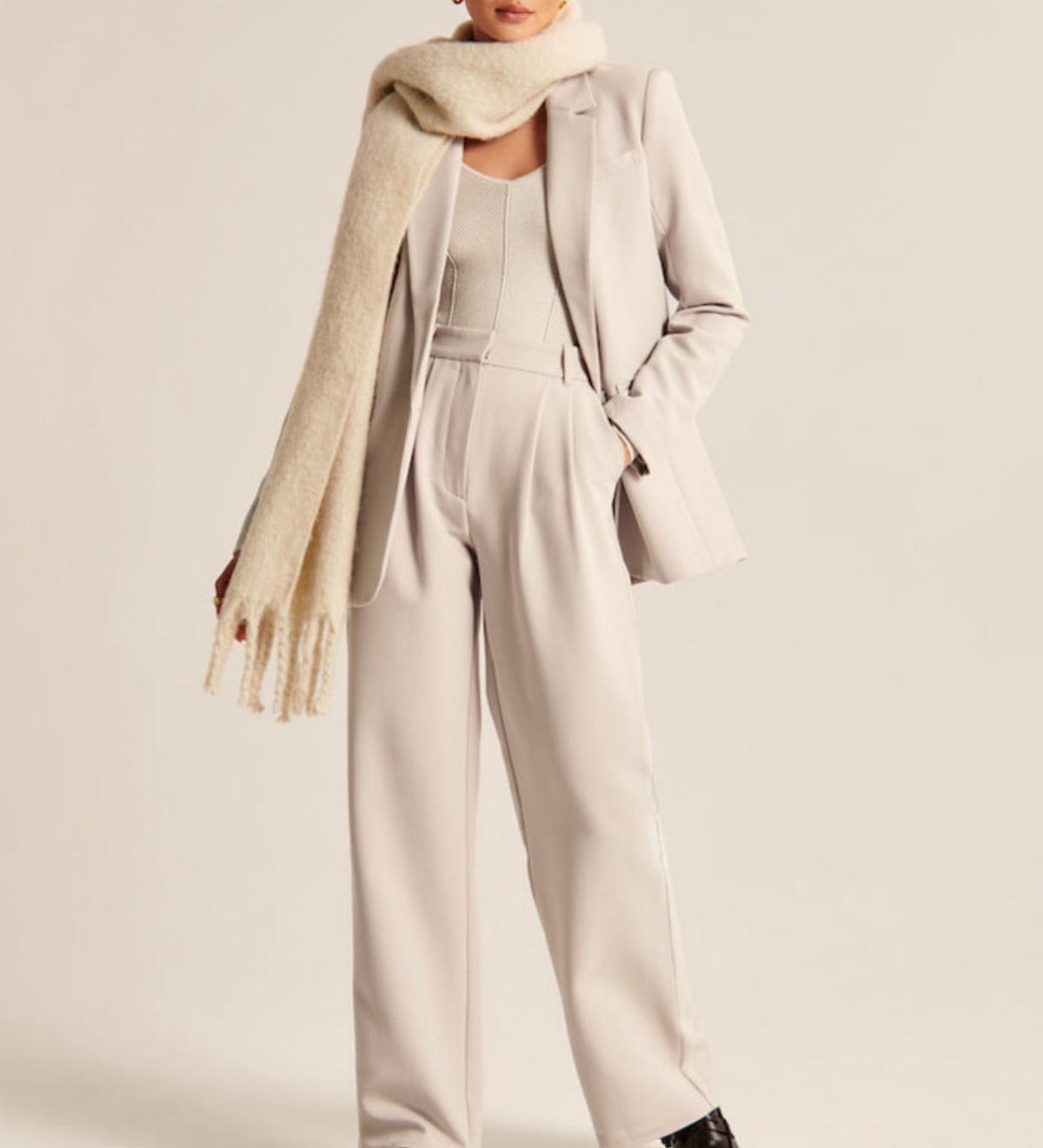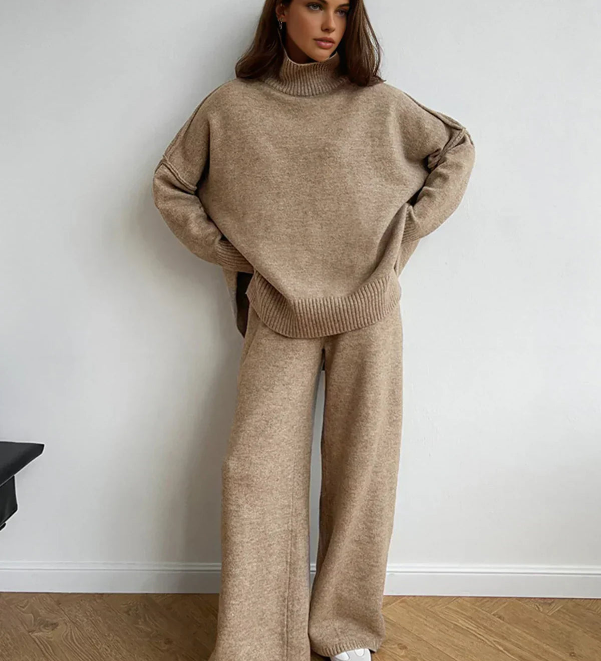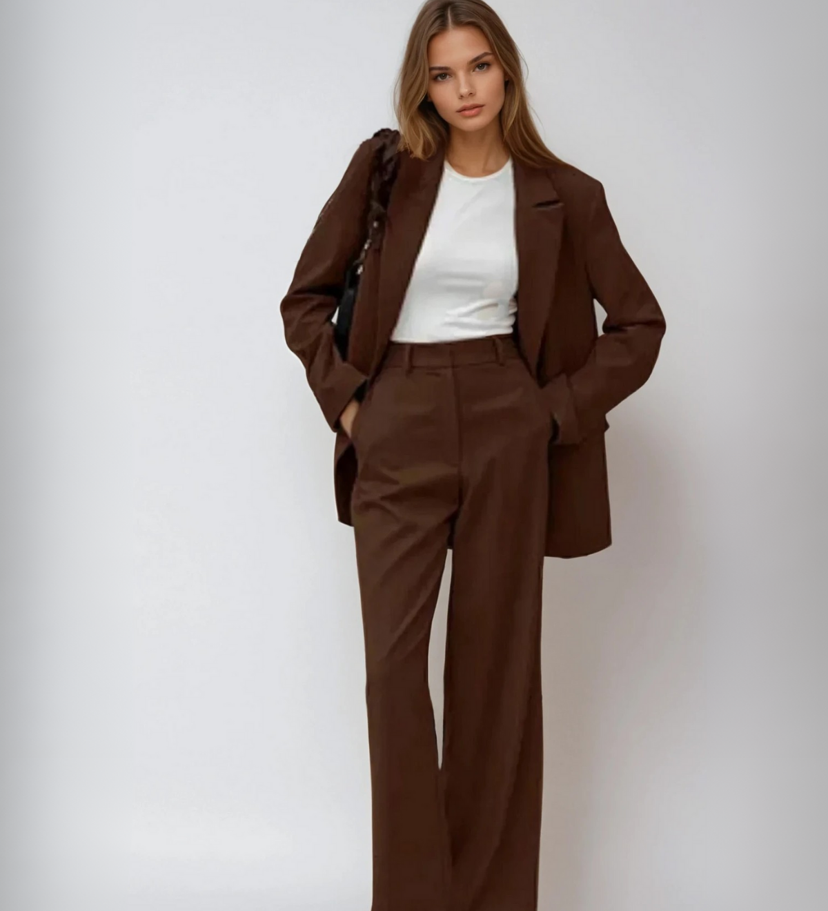 Set asortat de blazer vintage mocha și pantaloni cu croi larg