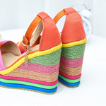 Adaugă o notă proaspătă de culoare stilului tău de vară cu Sandalele Monica Wedge—un element esențial vesel cu un stil atemporal.