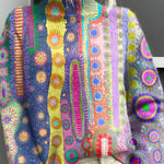Înfășură-te în căldură cu acest pulover tricotat cu guler înalt, care prezintă un model abstract colorat. Ideal pentru culoare și confort în timpul iernii.