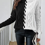 LEOVIA | Pulover Elegant cu Dungi și Guler Înalt