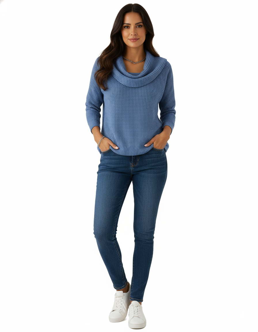 Melanie este puloverul perfect pentru zilele răcoroase — moale, lejer și extrem de feminin. Textura tip waffle și gulerul amplu adaugă un aer elegant, în timp ce croiala casual îl face ideal pentru ținutele de zi cu zi.