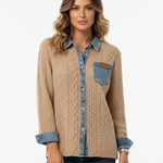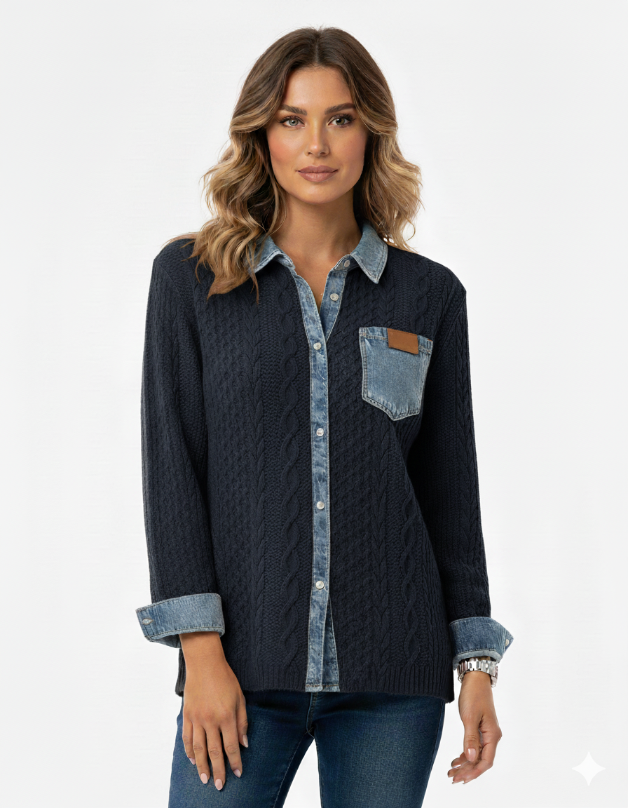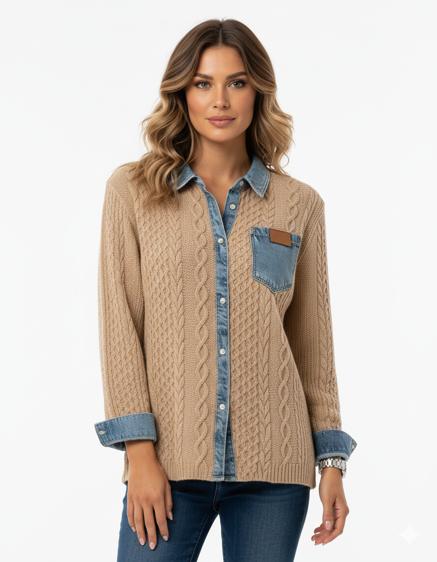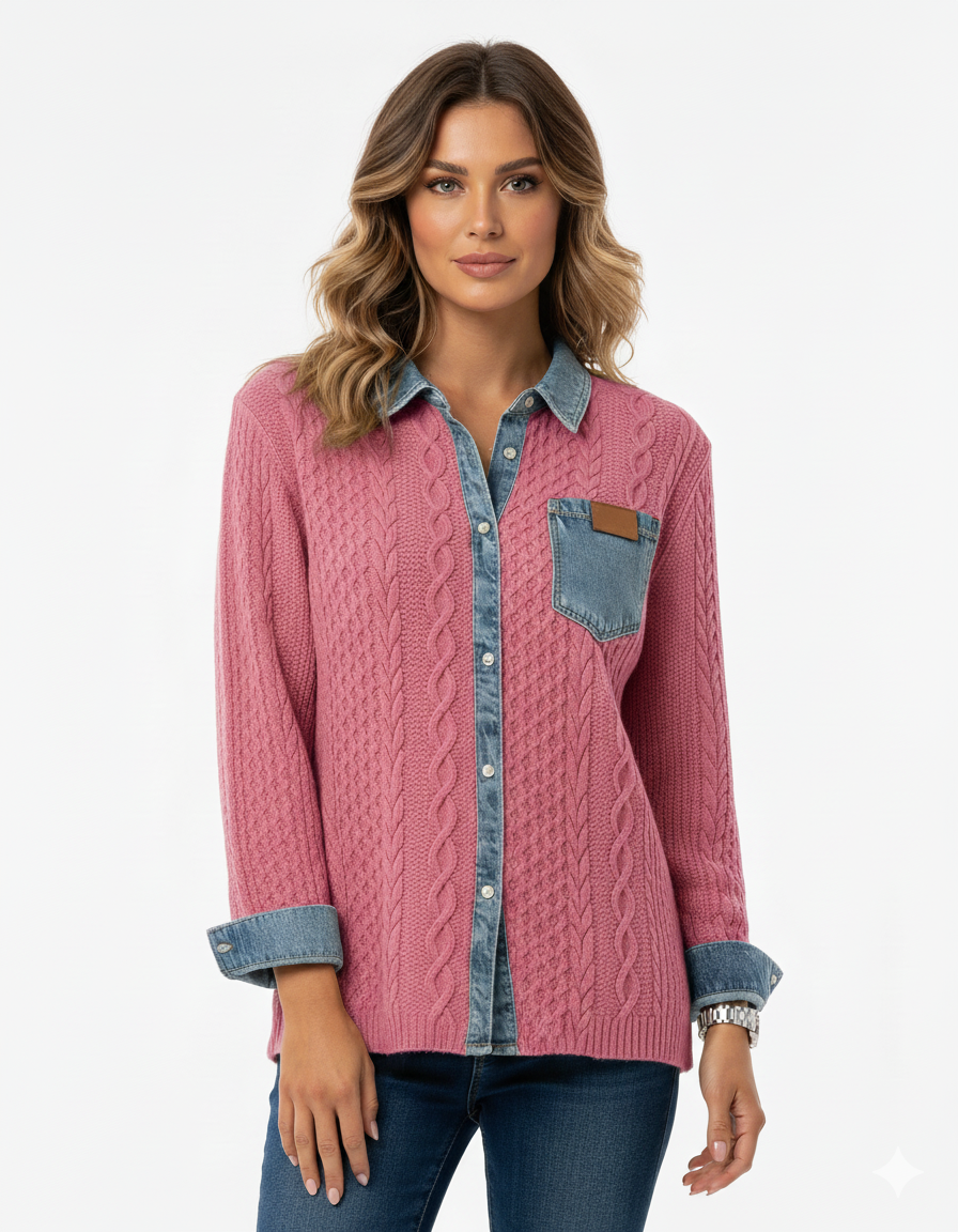 O piesă cozy, modernă și ușor de purtat, perfectă pentru zilele în care vrei confort, dar fără să renunți la stil. Textura tricotată inspiră feminitate, iar finisajele din denim adaugă acel twist cool care transformă orice ținută.