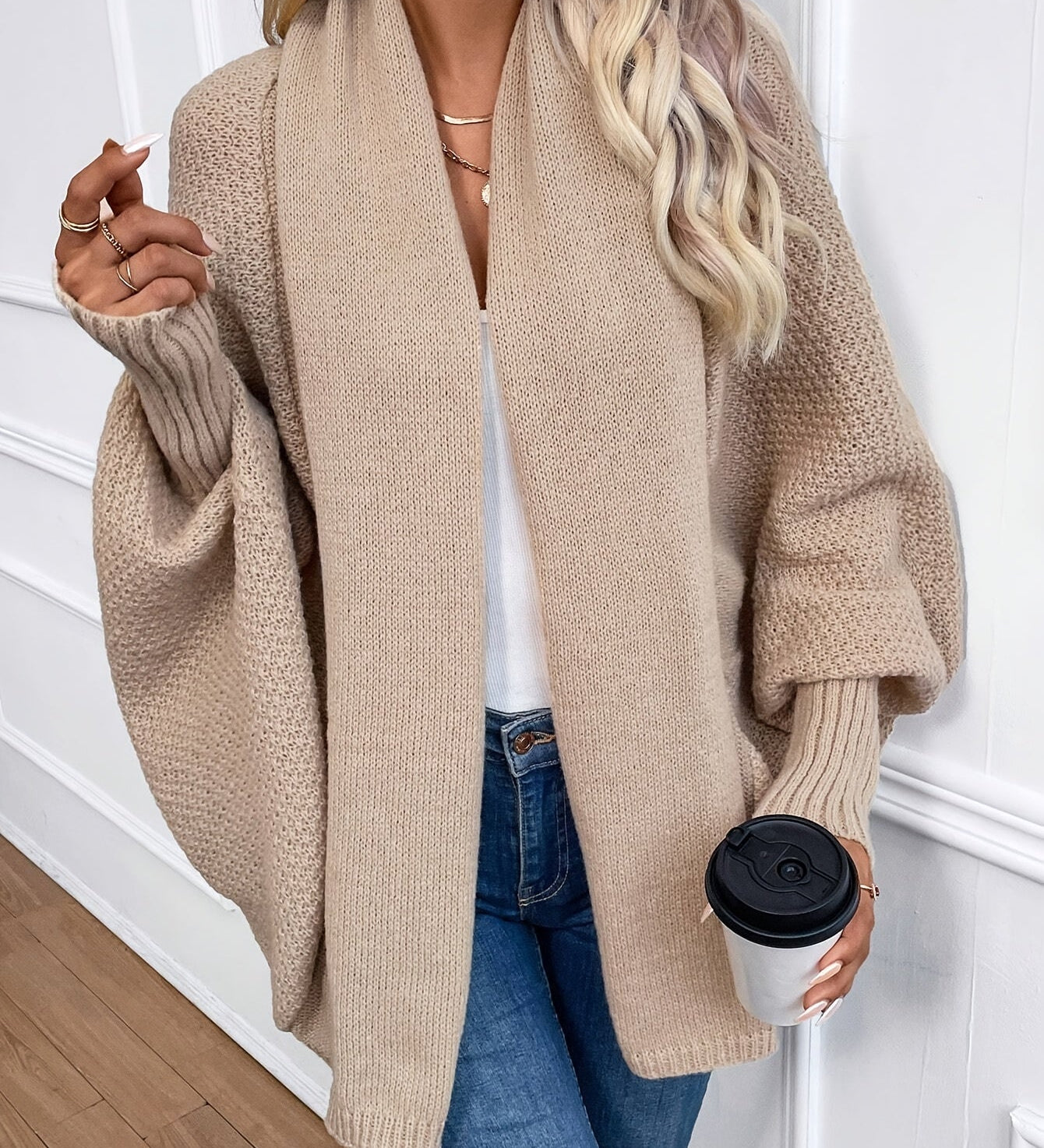 Zinnia - Cardigan Tricotat cu Mâneci Tip Pânză