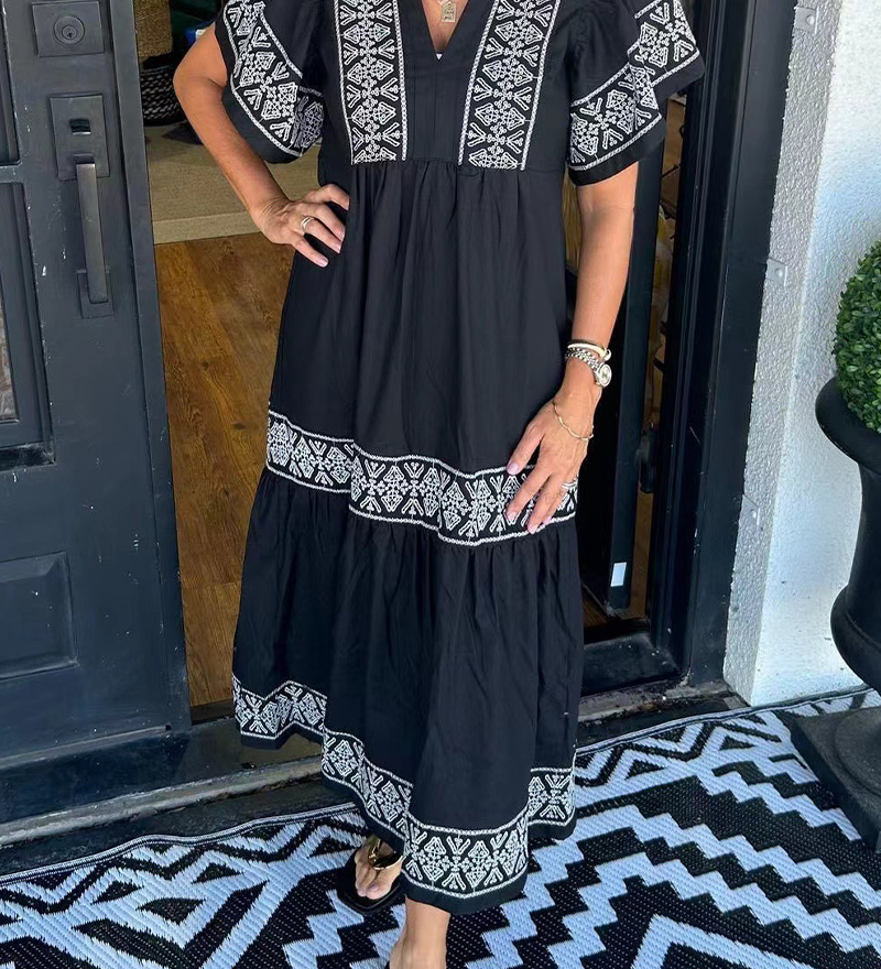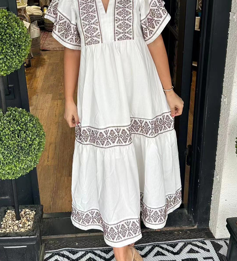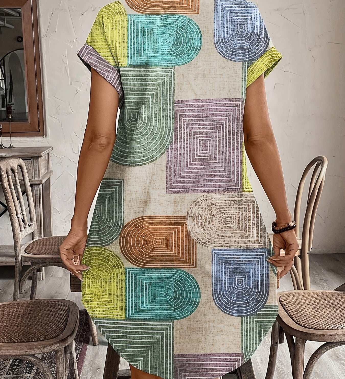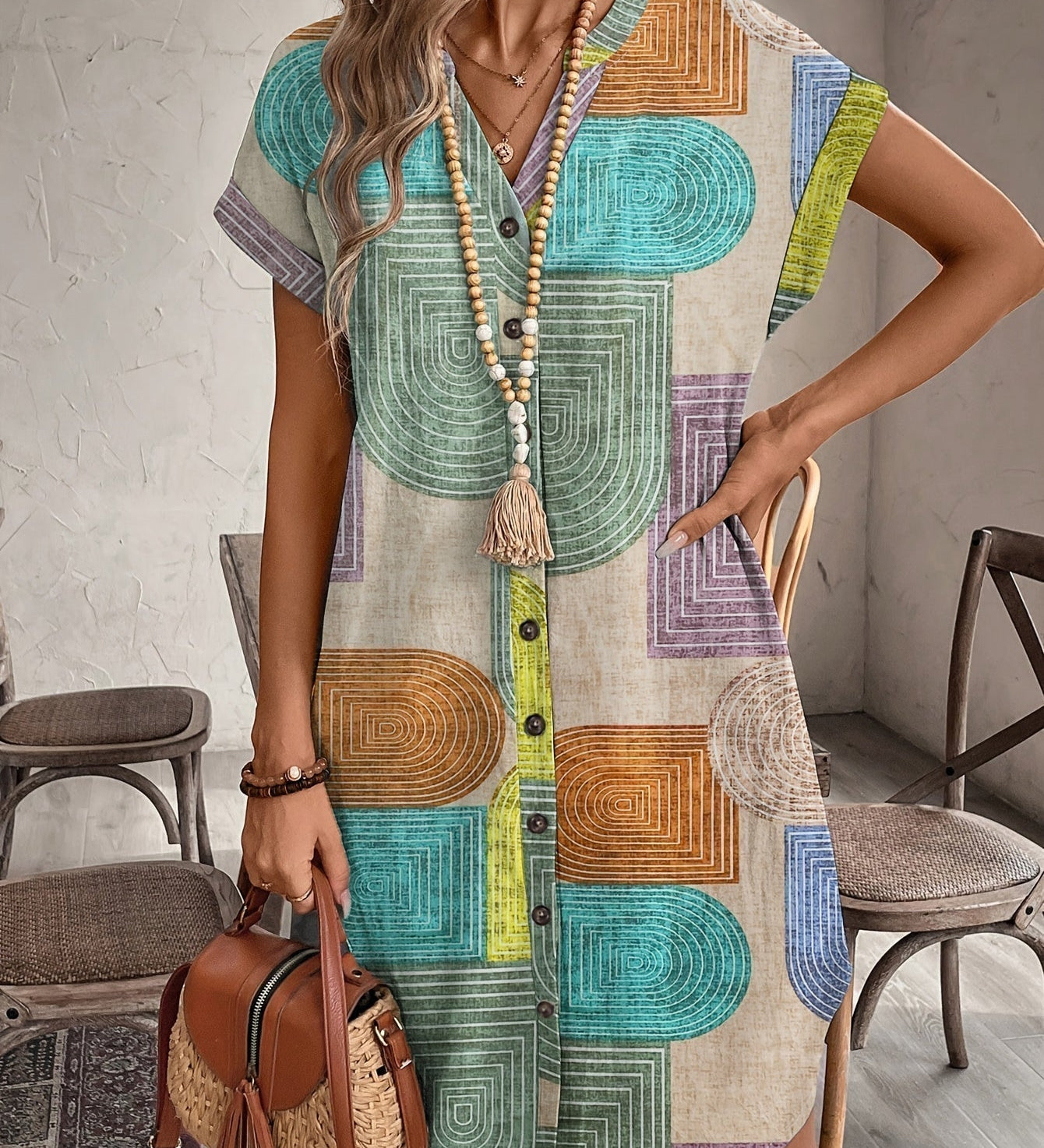 Mira | Rochie de Vară Geometrică cu Decolteu în V