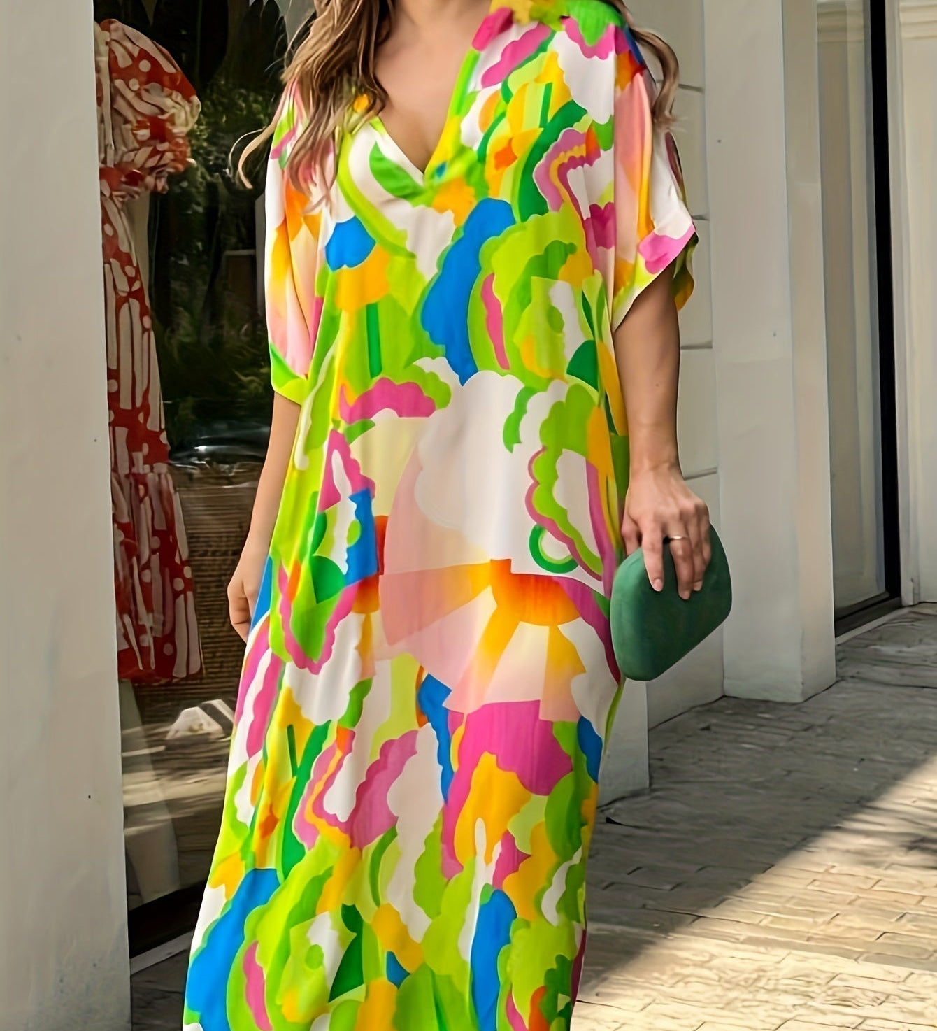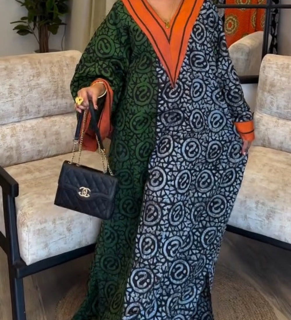 IMANI – ROCHIE MAXI KAFTAN CU DECOLTEU ÎN V DIN IMPRESIE AFRICANĂ