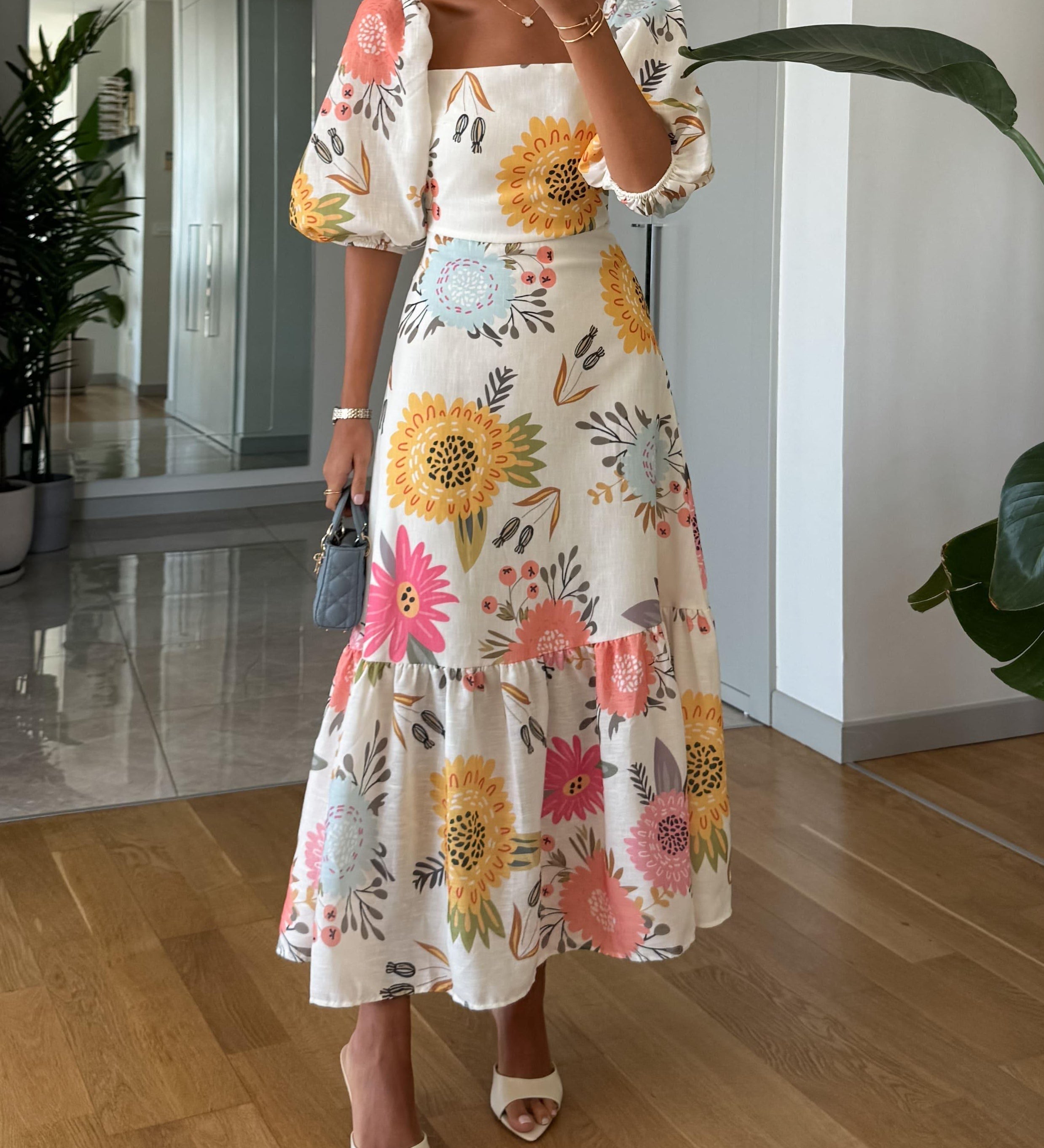 CAMILLE – ROCHIE CU MÂNECI PUFOASE ȘI ELEGANȚĂ ÎN FLORILE