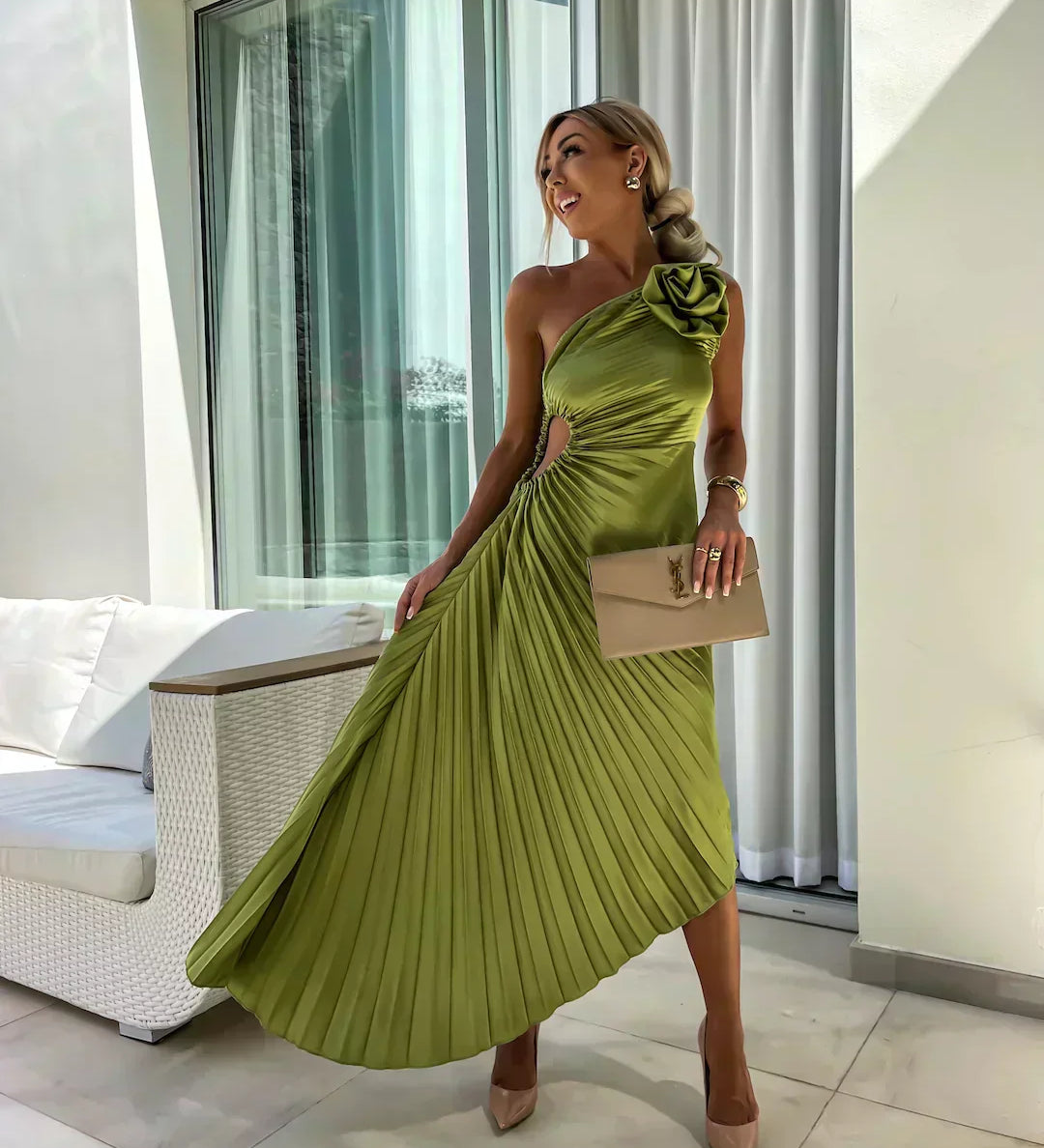 Daisy | Rochie Elegantă din Satin cu Guler Halter