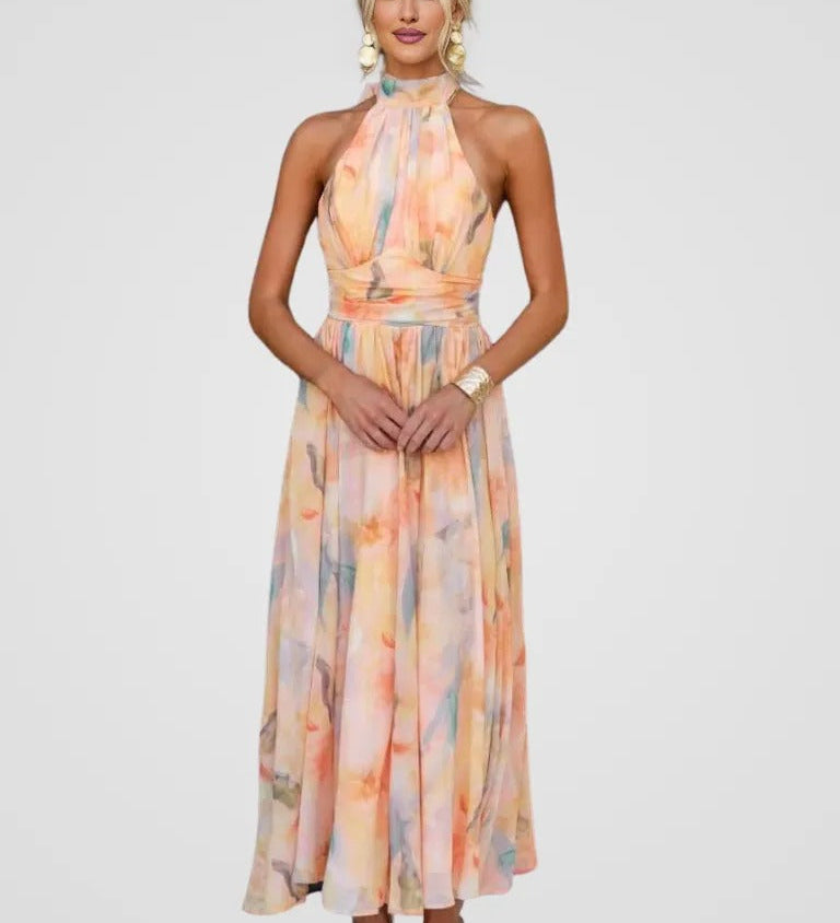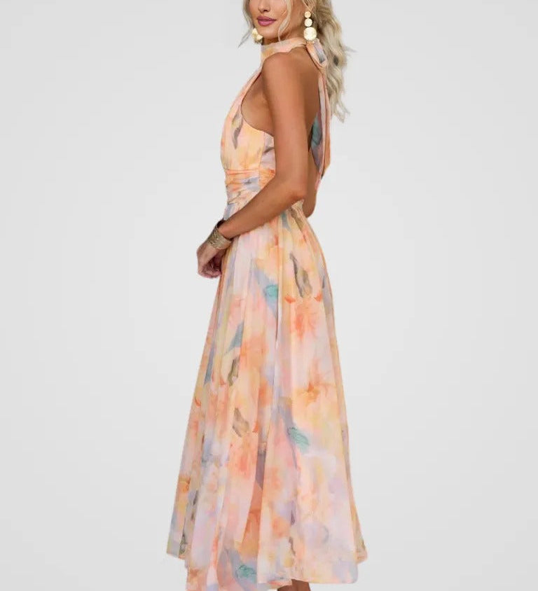 CELESTE – ROCHIE MAXI V-NECK ÎN FLORILE