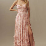 Intră în lumina reflectoarelor cu Rochia Elegantă Florală de Vară Helena™, concepută pentru a captiva la orice eveniment formal sau ocazie de seară. Confecționată din chiffon de poliester ușor și dantelă delicată din nailon, această rochie maxi dispune de un corset structurat cu cupe pliate pentru o potrivire perfectă. Bretele ajustabile și un spate cu șiret permit personalizarea siluetei, în timp ce un fermoar invizibil oferă confort fără cusături. Fantele jucăușe din față și volanele în cascadă de-a lungul tivului adaugă o mișcare grațioasă și un farmec feminin. Complet căptușită pentru un finisaj neted, această rochie îmbină fără efort sofisticarea clasică cu stilul contemporan.