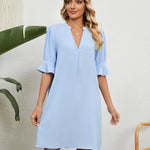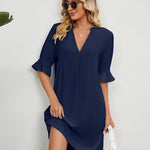 Elise - Rochie Solidă Plisată cu Decolteu în V