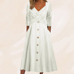 Rochia Elowen Elegantă și Slimming cu Butoane este concepută pentru a-ți evidenția silueta, oferind în același timp un aspect rafinat și sofisticat. Cu un design elegant, care pune în valoare figura, și detalii delicate cu butoane, această rochie este perfectă atât pentru ocazii casuale, cât și pentru cele formale. Indiferent dacă te îndrepți spre o întâlnire de afaceri, o cină sau o zi stilată în oraș, Rochia Elowen emană încredere și grație.