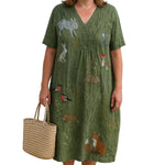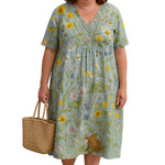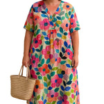 Rochia Grace Bloom & Breeze de vară este tovarășa ta veselă pentru escapadele în vreme caldă și confortul de zi cu zi. Cu forma sa aerisită, imprimeul floral jucăuș și decolteul în V care flatează, această rochie radiază bucurie și încredere. Fie că te plimbi prin piețe, te bucuri de un brunch sau te pregătești pentru paradis, este un must-have pentru un stil fără efort.
