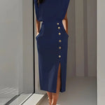 • Detaliu Chic Cu Fante Laterale: Fantele adaugă o notă subtilă de senzualitate, permițând mișcarea liberă și un plus de grație la fiecare pas.