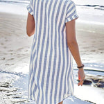 Rochia camasă Miranda Breeze Stripe este alegerea ta pentru eleganță relaxată. Cu farmecul său cu nasturi și silueta ușoară, această rochie este perfectă pentru tot, de la plimbări pe plajă la întâlniri la cafenea. Ușoară și respirabilă, este acel articol „pune pe tine și pleacă” pe care îl vei alege tot sezonul.