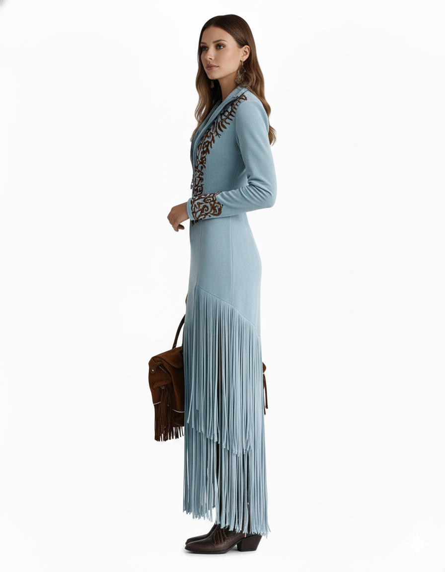 Nelia | Rochie western cu franjuri și broderie