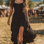 Rochia Zara Spirit Liber aduce un farmec boho cu o notă de stil rustic. Cu un corset elastic, tiv ondulat și o tăietură dramatică înaltă-jos, această rochie este perfectă pentru festivaluri, ieșiri nocturne sau zile în care vrei să te evidențiezi. Asortată cu cizme sau sandale, este o declarație de libertate și stil.